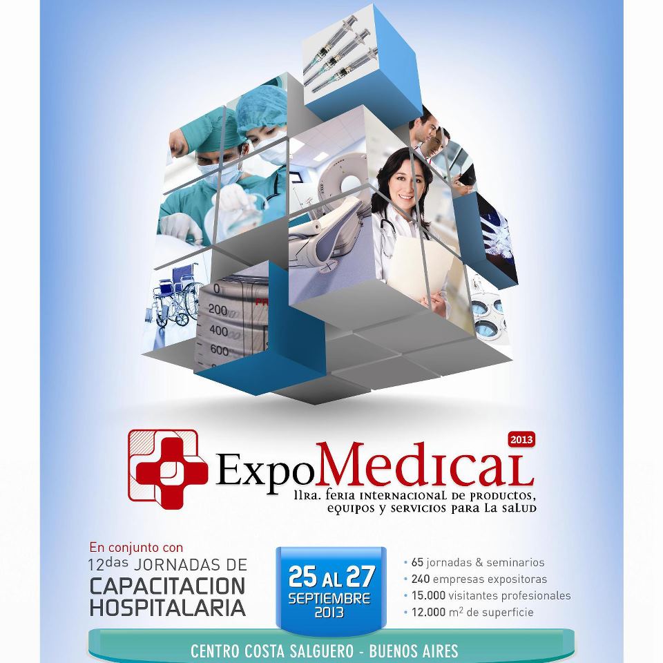 ExpoMEDICAL Feria Internacional de Productos, Equipos y Servicios para la Salud – se consolidó como una de las más importantes exposiciones del sector salud de los países de habla hispana. En su undécimoprimera edición que se llevará a cabo del 25 al 27 de Septiembre 2013, en el Centro Costa Salguero, en la Ciudad de Buenos Aires, ya se han confirmado la presencia de 200 stands, 15.000 visitantes profesionales y se esperan que los negocios que se concreten el evento superen los millones de pesos.