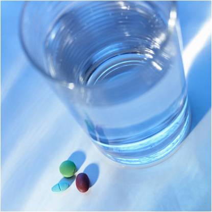 – Bueno, se va a tomar en la mañana esta pastilla roja con un vaso de agua; luego al mediodía esta pastilla azul con un vaso de agua, luego en la tarde esta pastilla amarilla con un vaso de agua, y en la noche esta pastilla verde con un vaso de agua.
