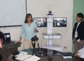 Durante la ceremonia de presentación se realizó una videoconferencia entre el coordinador zonal de Parsalud Amazonas, Pershing Bustamante, con el coordinador general de Parsalud, Walter Vigo; la especialista en Telesalud, Cecilia Díaz; y la coordinadora técnica de Parsalud, Rosa Béjar.