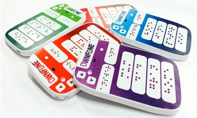 La compañía india Kriyate fabricó un prototipo de teléfono inteligente en Braille en 2013, con controles que emitían un sonido o vibraban luego de recibir determinadas instrucciones.