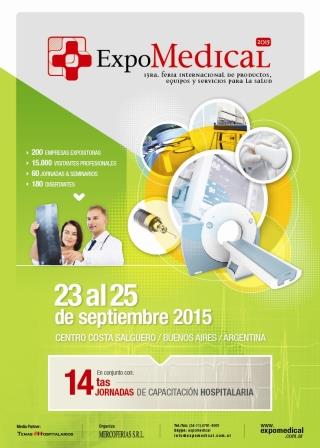 ExpoMEDICAL 2015, 13ra. Feria Internacional de Productos, Equipos y Servicios para la Salud , se llevará a cabo del 23 al 25 de Septiembre 2015, en el Centro Costa Salguero, en la Ciudad de Buenos Aires.
