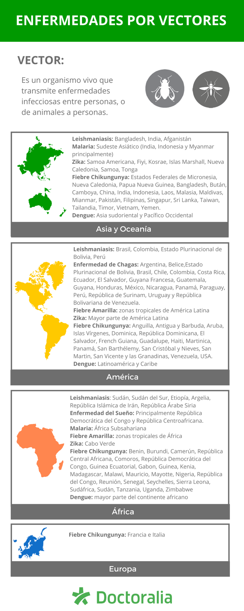 La extensión del virus del Zika ha puesto de relieve que la propagación de enfermedades infecciosas transmitidas por vectores está alcanzando unas dimensiones no conocidas hasta el momento. Los vectores son organismos vivos capaces de transmitir enfermedades infecciosas entre personas, o de animales a personas: insectos hematófagos que al alimentarse de la sangre de un portador infectado ya sea animal o persona, ingieren los microorganismos patógenos que posteriormente, al alimentarse de otra persona, propagan el virus. Además del Zika, algunas de las enfermedades transmitidas por vectores con más incidencia son el Dengue, la Malaria, la Fiebre Amarilla, la Fiebre Chikunguña, la Leishmaniasis, la Enfermedad de Chagas, y la Enfermedad del Sueño.