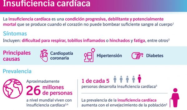 La insuficiencia cardíaca es una afección debilitante, progresiva y potencialmente mortal que ocurre cuando el corazón no puede proveer una irrigación sanguínea adecuada para satisfacer las demandas de sangre oxigenada del cuerpo, o bien, no puede relajarse lo suficiente para llenarse de sangre, lo cuál conduce a la acumulación de líquido (congestión) en los pulmones y en los tejidos periféricos.4 Es una patología muy común que afecta a más de 26 millones de personas en el mundo, y que se cree que afectará a una cantidad aún mayor de personas a medida que la población envejezca. La insuficiencia cardíaca tiene una elevada prevalencia en las personas con diabetes; sin embargo, menos de la mitad de las personas que tienen insuficiencia cardíaca no tienen diabetes.