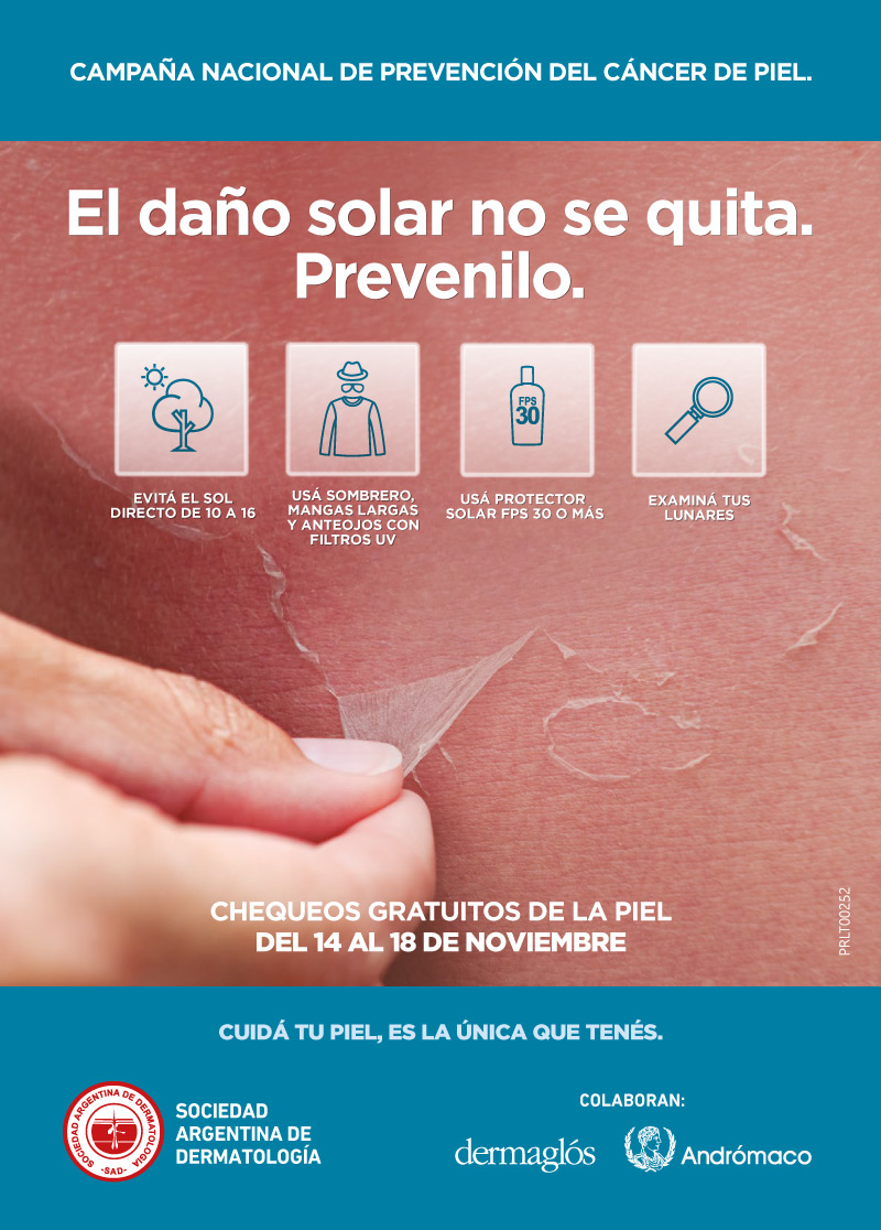 Hace casi ya tres décadas, la Sociedad Argentina de Dermatología realiza su campaña anual de prevención del cáncer de piel. Este año, además, entre el 14 y el 18 de noviembre, habrá jornadas de chequeos gratuitos en los centros de salud de todo el país, fomentando la consulta con el médico especialista.