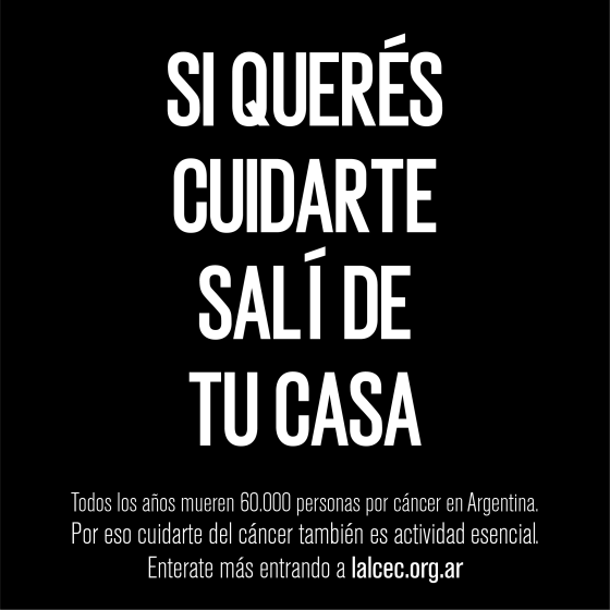 LALCEC lanzó la campaña ‘Si querés cuidarte, salí de tu casa’, instando a que la gente no deje de realizarse … Más
